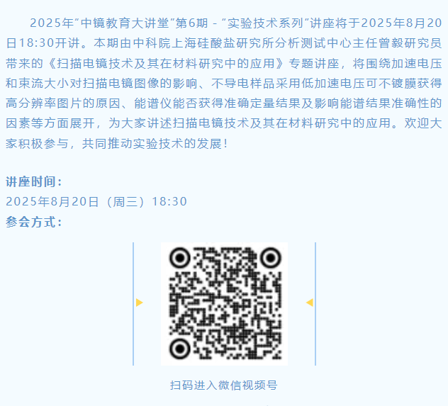【講座預告】中鏡教育大講堂-實驗技術系列2025年第6期(總第36期)