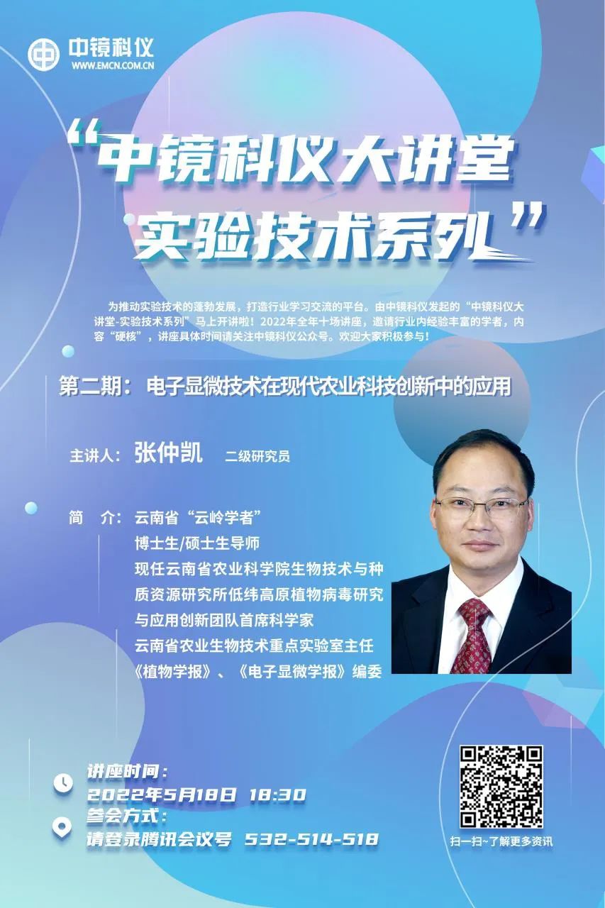 第二期:電子顯微技術在現代農業科技創新中的應用 為推動實驗技術的蓬勃發展,打造行業學習交流的平臺。由中鏡科儀發起的第二期“中鏡科儀大講堂-實驗技術系列”圓滿結束! 本系列共十場講座,每月一期,具體時間請持續關注中鏡科儀公眾號,歡迎大家積極參與!